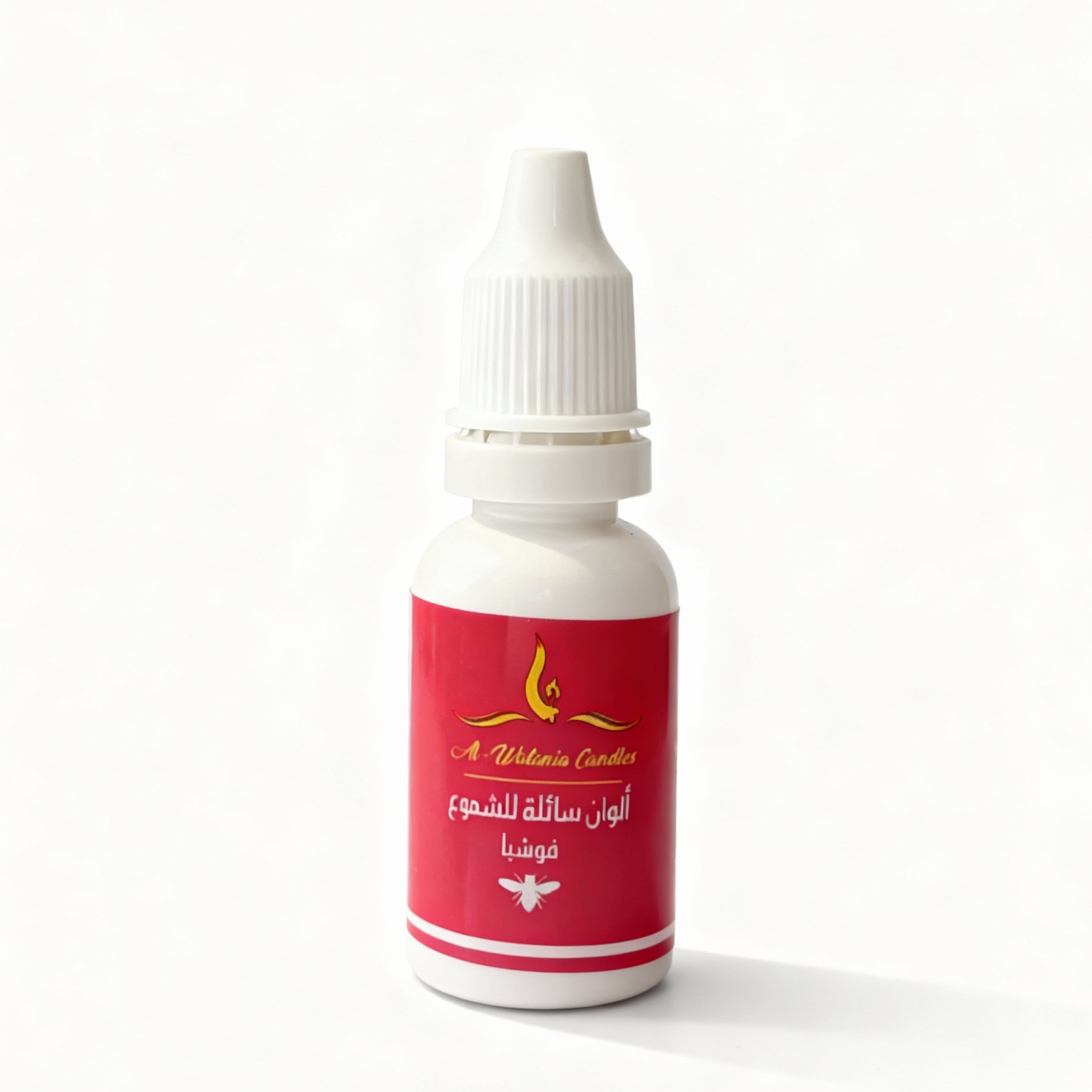 عالي التركيز فوشيا صبغة سائلة بحجم 15 جم لصناعة الشموع. سهلة المزج، ثابتة مع الحرارة، ومثالية للحصول على لون زاهي ومتجانس بجودة احترافية مع جميع أنواع الشمع.