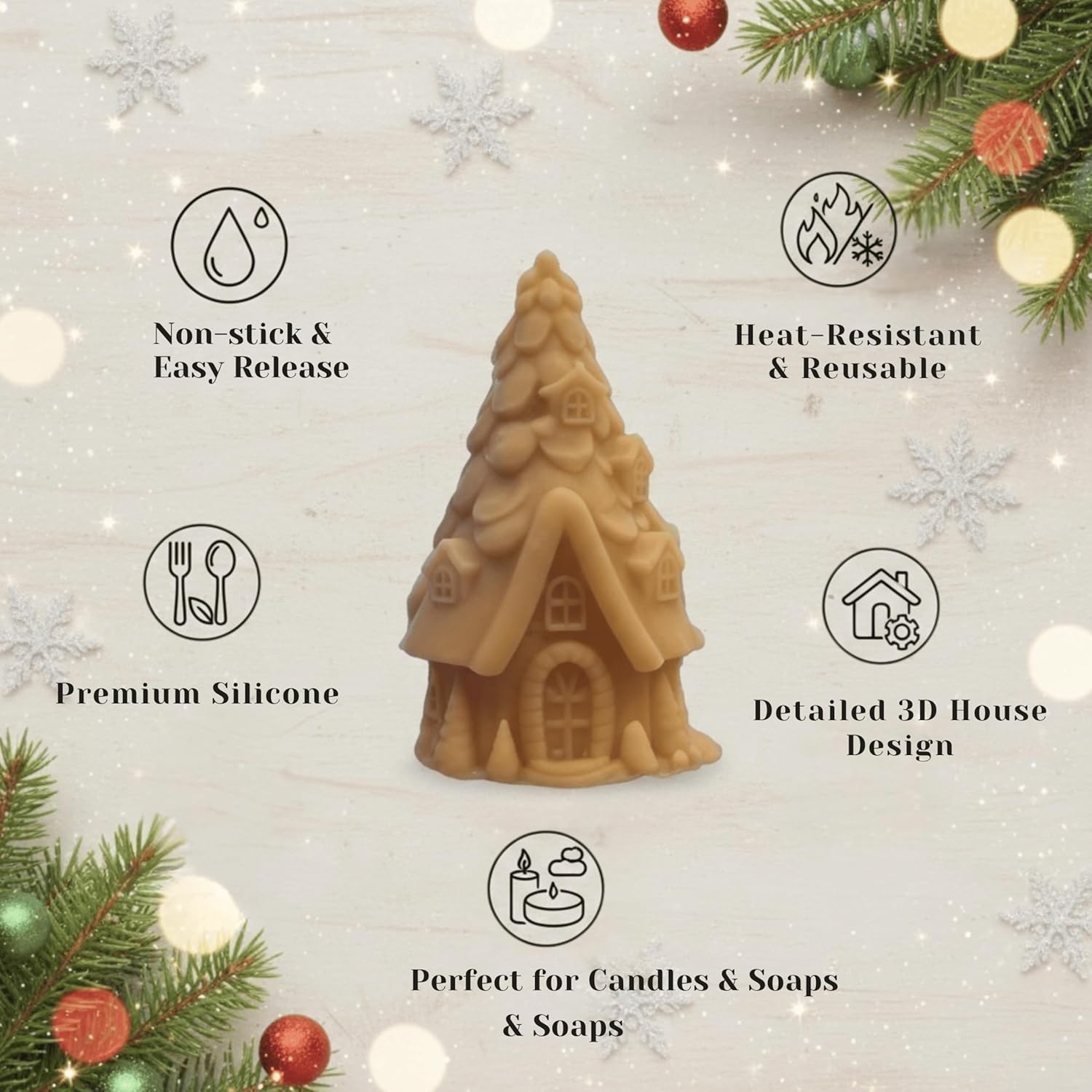 3D Christmas House Silicone Mould for Candle and Soap Making, 12×6 cm, Heat-Resistant, Non-Stick, DIY Holiday Craft Tool