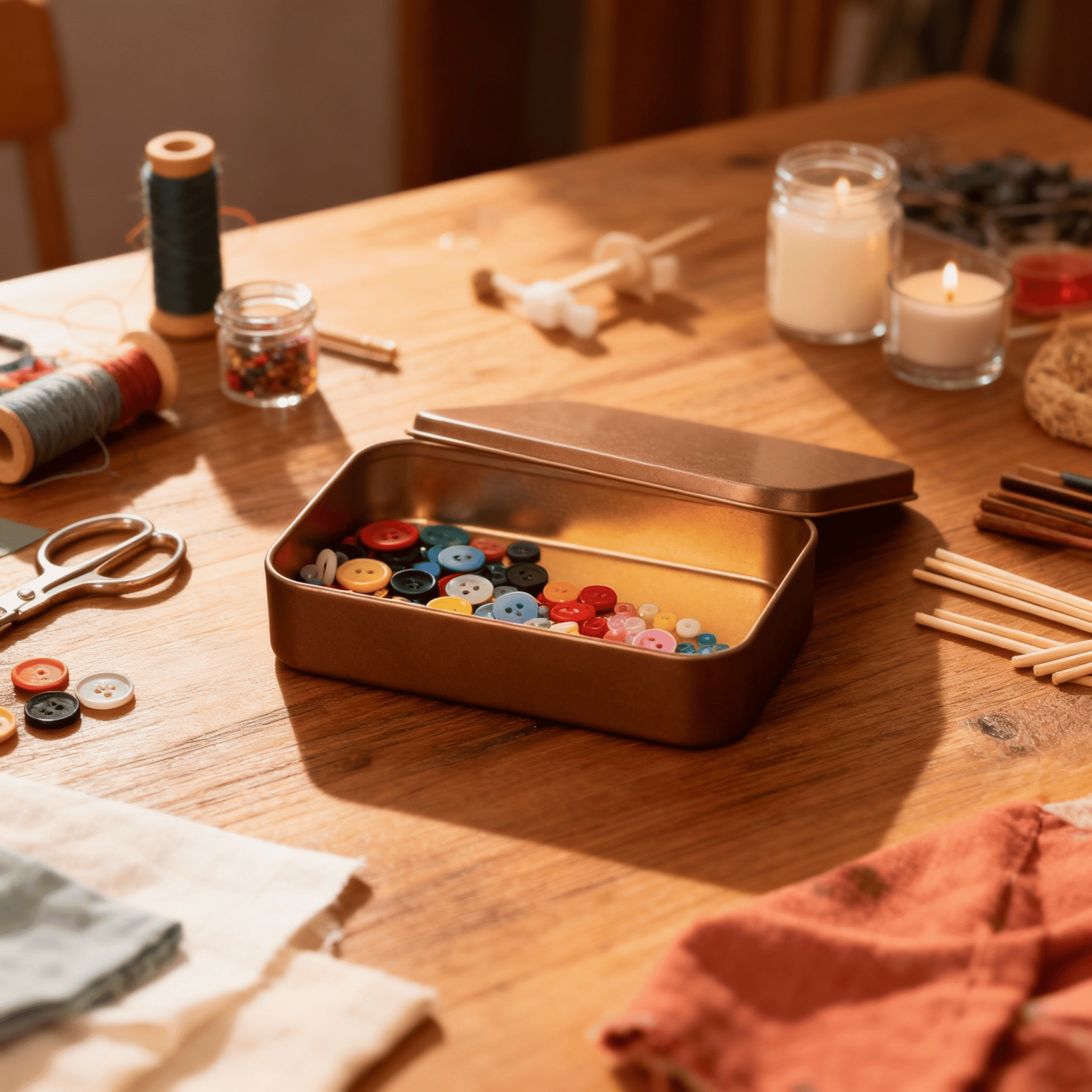 Our Mini Gold Metal Storage Tin (1.7 × 6 cm) is the perfect compact solution for storing small items. With a durable metal body and secure lid. Its small size makes it easy to organize, pack, and use in any workspace or home setting