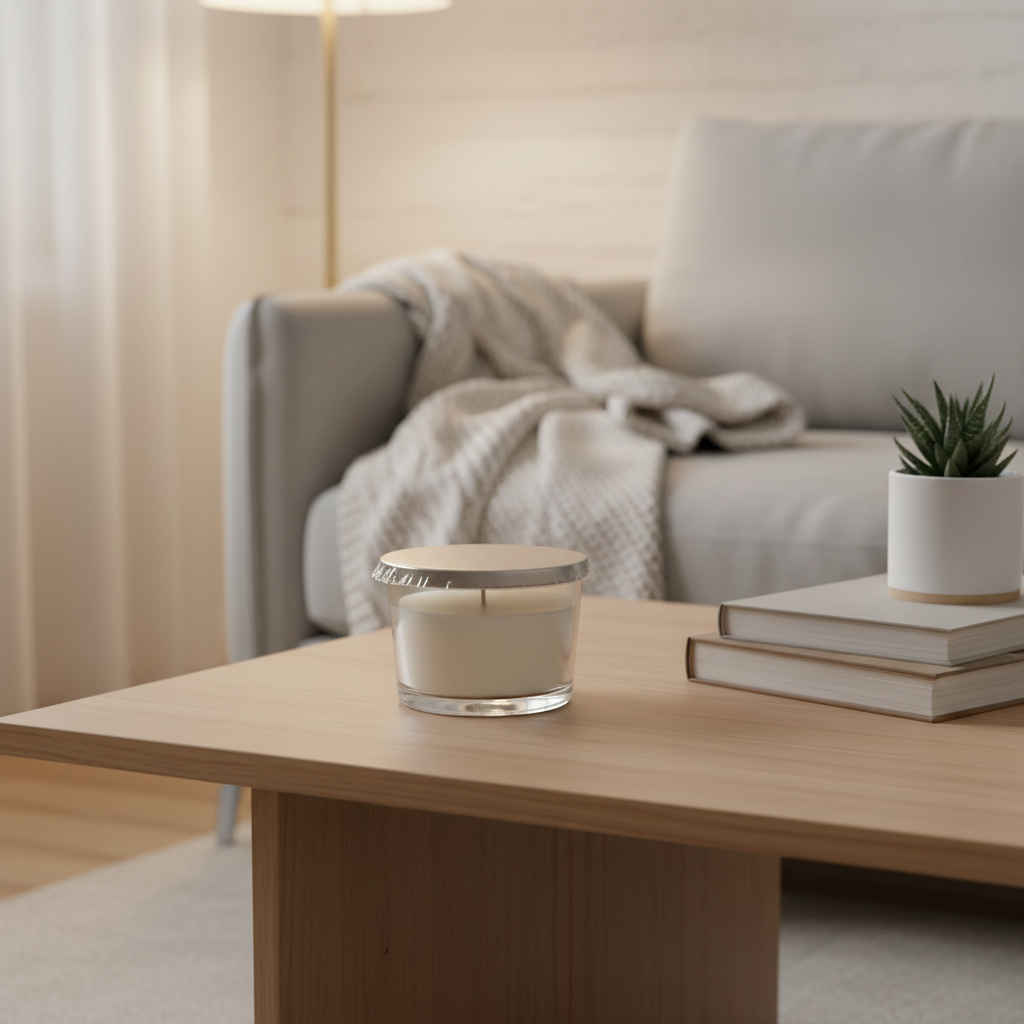 • Transparent Glass Container: Showcases the candle beautifully for a clean, elegant look